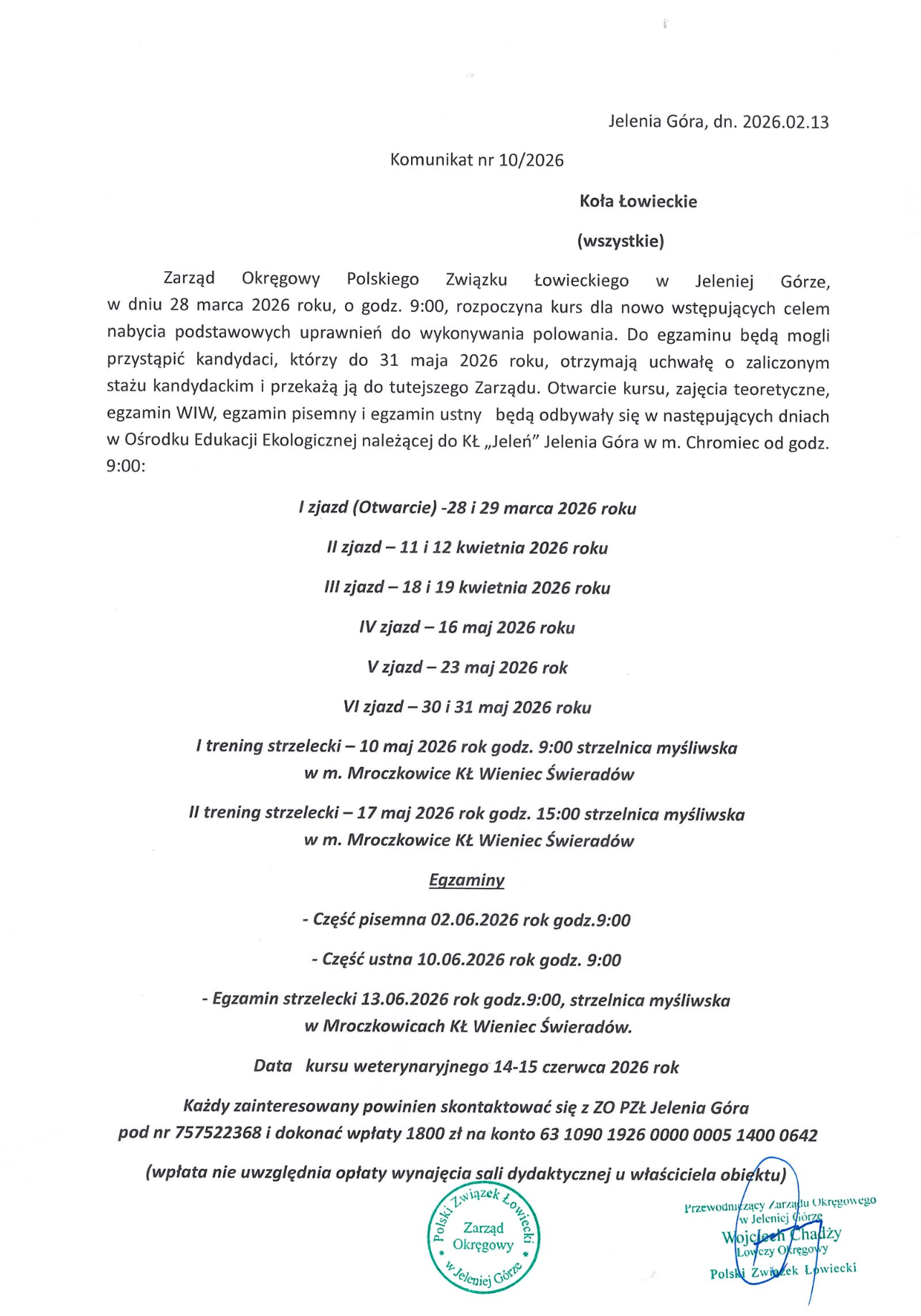 Komunikat nr 10/2026 | Kurs dla nowowstępujących rozpocznie się 28 marca 2026 r.